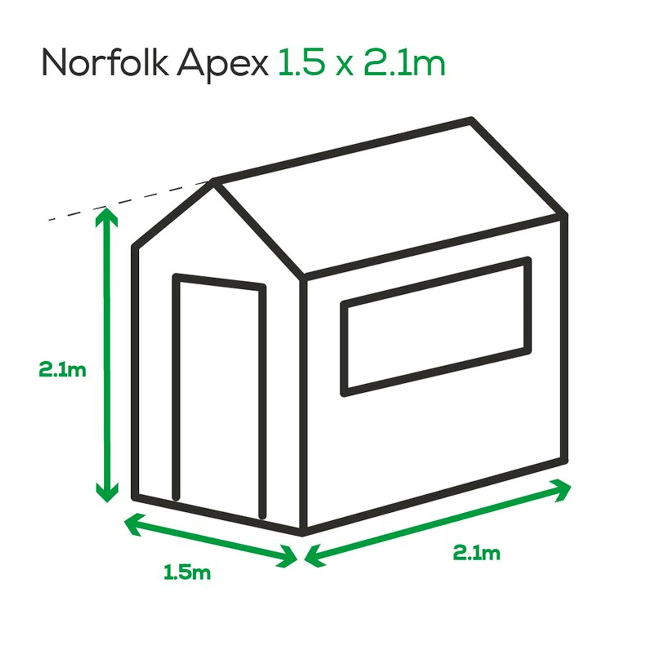 The 2.1m x 1.5m Norfolk Apex Shed is the best-selling shed in the Albany Apex roof shed range. This shed is constructed from tongue and groove shiplap even the floor and roof! Shiplap is advantageous as it allows water to run off it, this can increase its waterproof ability and will prevent draughts from penetrating between the boards. This shed is supplied with quality polyester roofing felt. The door is fully framed and braced, with three hinges. This shed has two windows side-by-side which allows in lots of natural light. The window side can be either the left or the right-hand side. The framing on this sturdy shed is 45mm x 34mm. There is a single door and it locks by lock and key. We recommend treating timber sheds within 6 months of installing. As with all timber products, regular treatment and maintenance is advised. Remember that you need a good solid base for your shed, check out our advice page for more info.