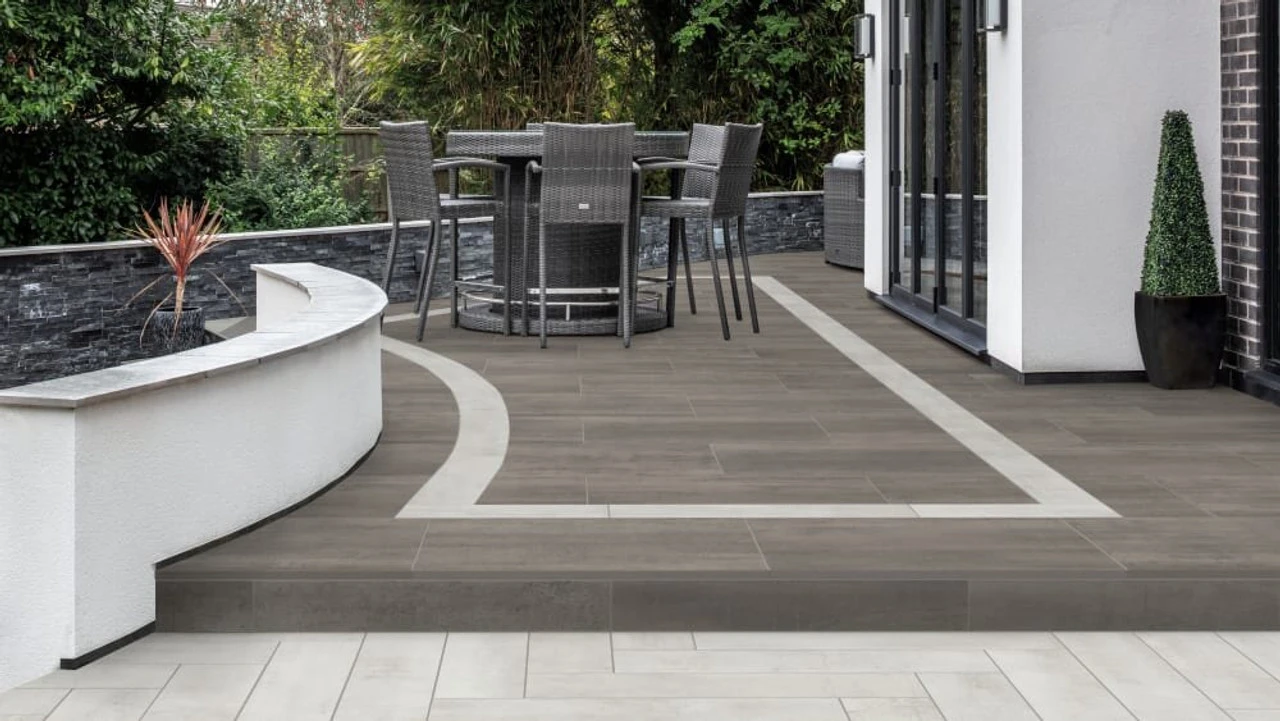 Arrento Encore is a contemporary, Italian porcelain paving range available in a range of sizes and colours. Inspired by the latest trends, the warm colour tones, complemented by a subtle linear aesthetic, offer a refreshing natural look, making this porcelain perfect for a range of property styles. Look to combine colours and sizes within your project to form different zones, or pair with generous planting to create a space of sanctuary.