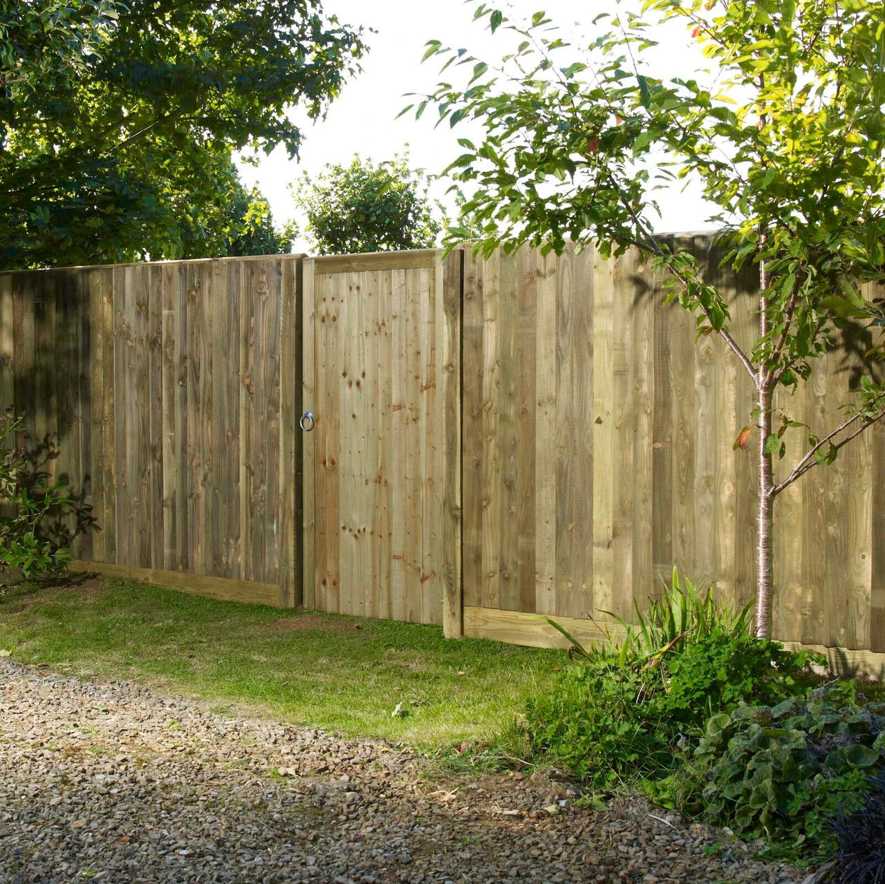 The Country side gate is a heavy duty featheredge board gate. The heavy duty frame is ledged and braced with mortice & tenon joints. It contains 4 featheredge boards and features a pedestrian gate for easy walk in access.