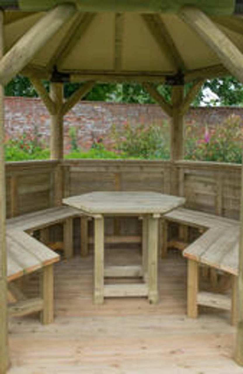 Forest Garden Hexagonal 3.6m Cedar Roof Gazebo Furnished Green