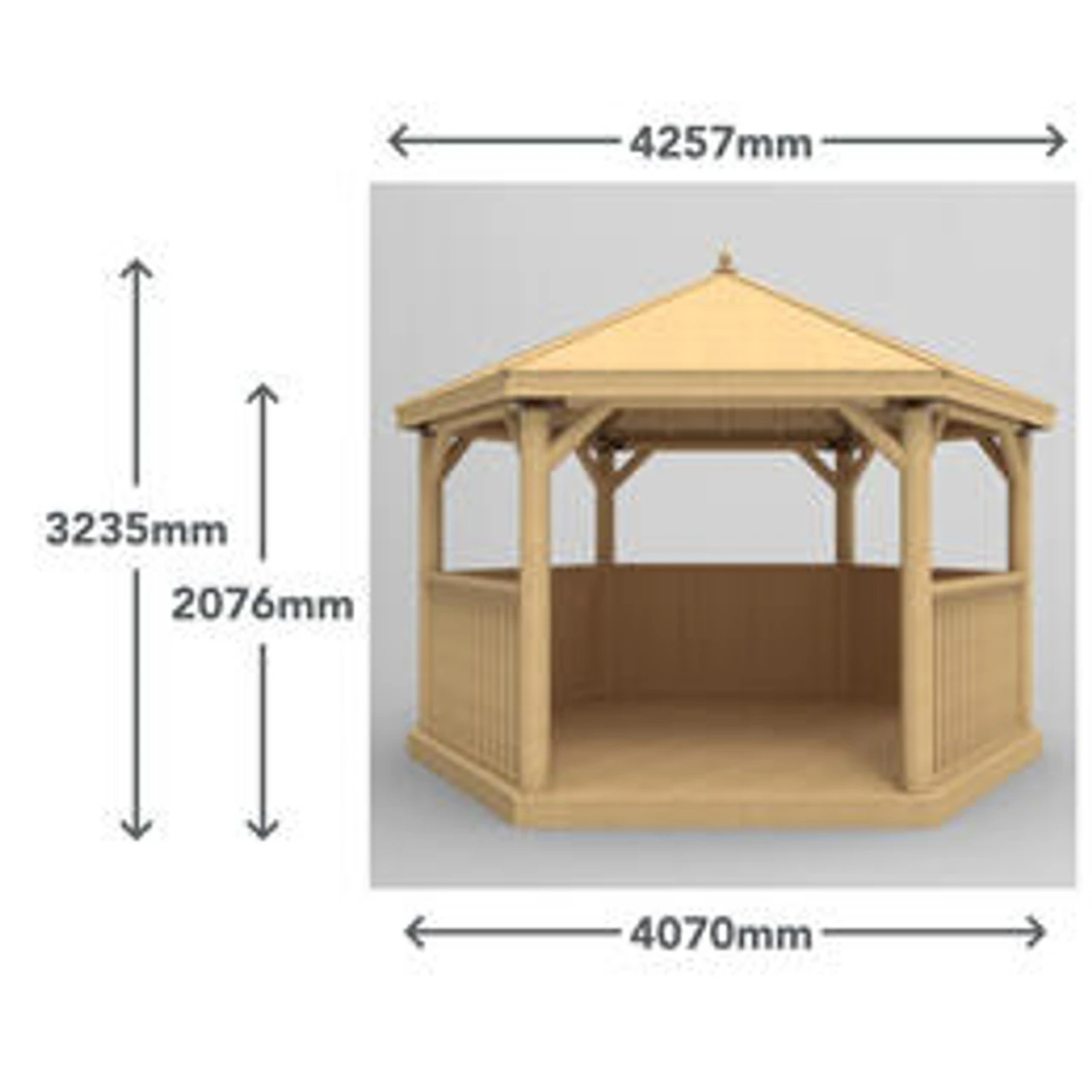 Forest Garden Hexagonal 3.6m Cedar Roof Gazebo Furnished Green