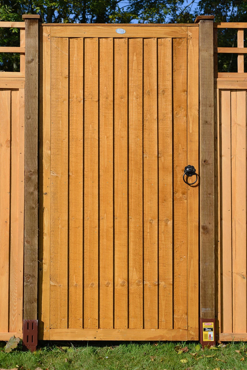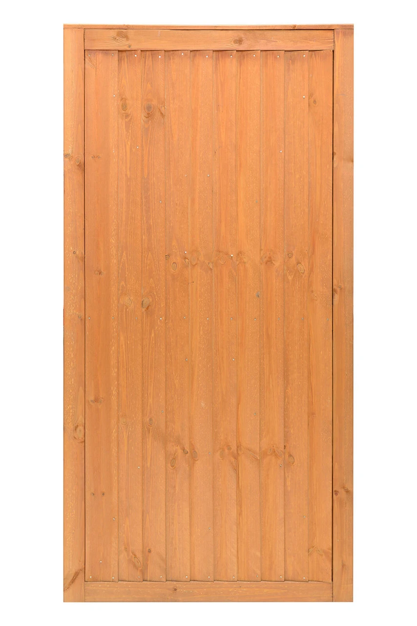 A classic vertical board contemporary wooden gate with a fresh new look. Re-engineered with fine sawn timber for a smooth and premium finish. Pressure-treated with a golden brown colour providing strength and longevity in use. Matching board Panel available.