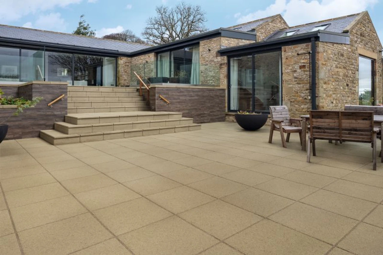 Marshalls Saxon Paving blends the functionality and durability of concrete paving with a textured finish that is unique and long-lasting. The practical, textured non-slip surface of Saxon, which uses a combination of Yorkstone aggregate, is a popular option with families across the UK. Saxon is available in two popular colours, Natural and Buff, and four sizes, so the design possibilities are endless. Also, projects created with Saxon are known to commonly stand the test of time.